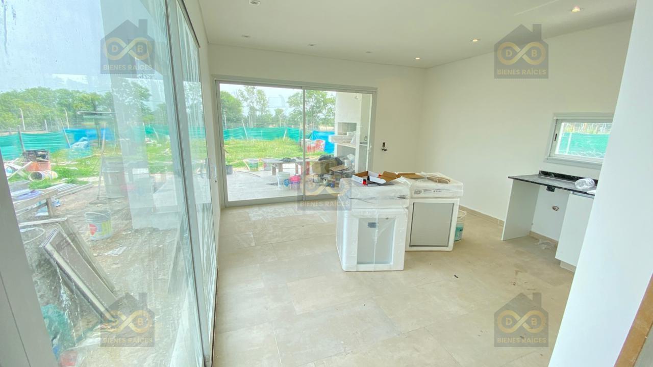 Hermosa propiedad de 215 mts sobre lote de 585 mts de dos plantas . Posee en planta baja muy amplio living comedor con grandes ventanales con vista al verde, cocina integrada con anafe y horno empotrados, toilette de recepción. y gran escritorio/play/ cuarta habitacion. Amplia galería con parrilla. En planta alta cuenta con un dormitorio principal en suite con vestidor y dos dormitorios secundarios que comparten un baño completo. Posee una gran terraza para una posible expansion. Excelente calidad constructiva posee techo de losa, luces Led en todos los ambientes , griferias y Sanitarios FV , mesadas de mármol y bacha Jonhnson en cocina , mesadas de silestone en los baños , pre instalación de aires acondicionados en todos los ambientes, pisos de porcellanato, vidrios DVH. Santa Lucía es uno de los barrios pertenecientes al complejo Pilar del Este, conformado por 364 lotes, SUM, 2 canchas de tenis, cancha de futbol y plazas con juegos. Cuenta con todos los servicios que definen la calidad de un proyecto de primera linea, entre ellos, edificio de acceso, calles asfaltadas con cordón cuneta, alambrado perimetral con cámaras, redes subterráneas de agua, cloaca, gas y electricidad, seguridad privada las 24 hs, alambrado público y forestación. El masterplan de Santa Lucia fue diseñado con el objetivo de preservar los árboles y espacios verdes existentes, y a su vez, resguardar la intimidad de las viviendas. Pilar del Este es una comunidad en pleno crecimiento con identidad propia. Los aspectos sociales, medioambientales y humanos contribuyen a completar la propuesta de mudarse a un nuevo lugar con la idea de lograr un cambio de estilo de vida. Pilar del Este se ubica sobre la ruta 25, con muy buen acceso por la calle Camaaño, a la altura del kilometro 46 de la Panamericana, ramal Pilar. Es un complejo proyectado sobre 627 ha en Pilar, compuesto por 11 barrios, club deportivo (cancha de tenis, futbol, básquet, rugby, hockey, pista de semi-atletismo, gimnasio, pileta y club house) y colegios (hoy se encuentra funcionando el colegio St Mary of the Hills). Nota Importante: Toda la información y medidas provistas son aproximadas y deberán ratificarse con la documentación pertinente y no compromete contractualmente a nuestra empresa. Los gastos (expensas, ABL) expresados refieren a la última información recabada y deberán confirmarse. Fotografías no vinculantes ni contractuales.