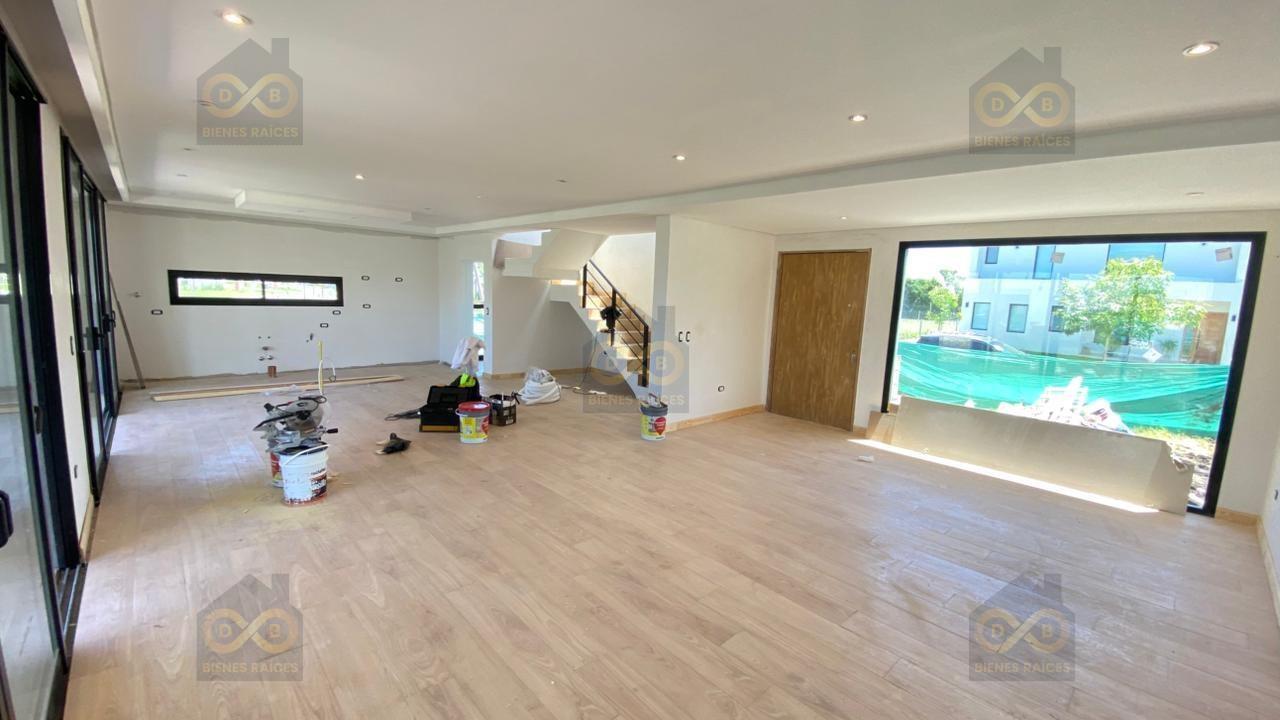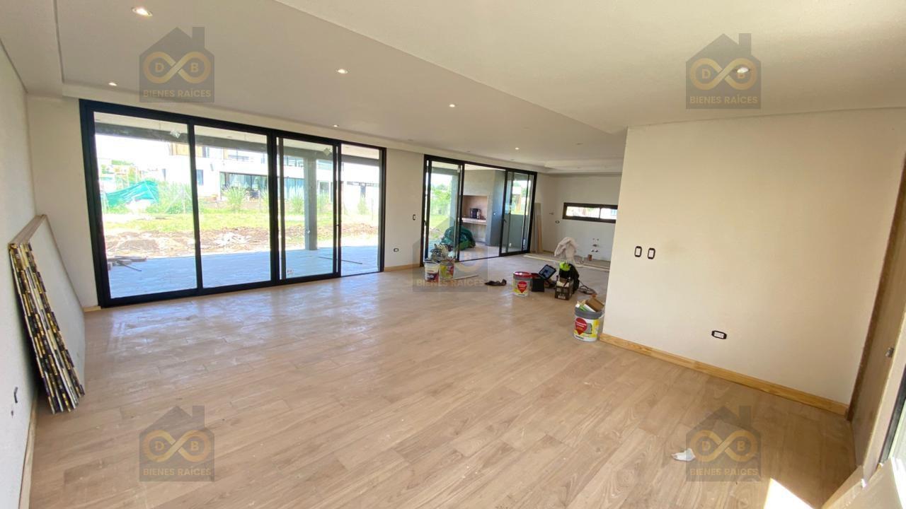 Se Vende casa moderna a estrenar, de una sola planta, sobre lote interno de 500 m2 y sobre una calle muy tranquila. Fecha de entrega programada Noviembre 2025 La casa cuenta en PB con un muy amplio living comedor con cocina integrada y gran vista a la galería y al parque. Amplio escritorio o comoda 4ta habitación, baño de visitas. Lavadero independiente. Gran galeria con parrilla y bacha. La cual se podria cerrar con vidrios y lograr un ambiente espectacular para disfrutar todo el año. En PA cuanta 1 amplio dormitorio principal en suite con baño completo y vestidor 2 dormitorios que comparten un segundo baño completo. Todos los dormitorios tienen salida a un hermoso balcon terraza. Otras Características destacadas son: Porche de acceso entrada principal Acceso vehicular para dos autos Calefacción por losa radiante Aberturas DVH color negro El Barrio Santa Lucía tiene 33 hectáreas 364 lotes Gas, cloacas, agua potable, red eléctrica subterránea, SUM, cancha fútbol 7 y 2 canchas de tenis y 1 cancha de paddle. Pilar del Este, es una urbanización pensada y diseñada para que sus habitantes puedan acceder al confort viviendo en un lugar tranquilo y seguro. Se llega por la calle Caamaño, en el km. 46 de Panamericana, ramal Pilar y, a través por una magnifica entrada, se un accede a un boulevard que comunica a todos los barrios que se extienden a lo largo de 550 has de tierras altas y arboladas Nota Importante: Toda la información y medidas provistas son aproximadas y deberán ratificarse con la documentación pertinente y no compromete contractualmente a nuestra empresa. Los gastos (expensas, ABL) expresados refieren a la última información recabada y deberán confirmarse. Fotografías no vinculantes ni contractuales.